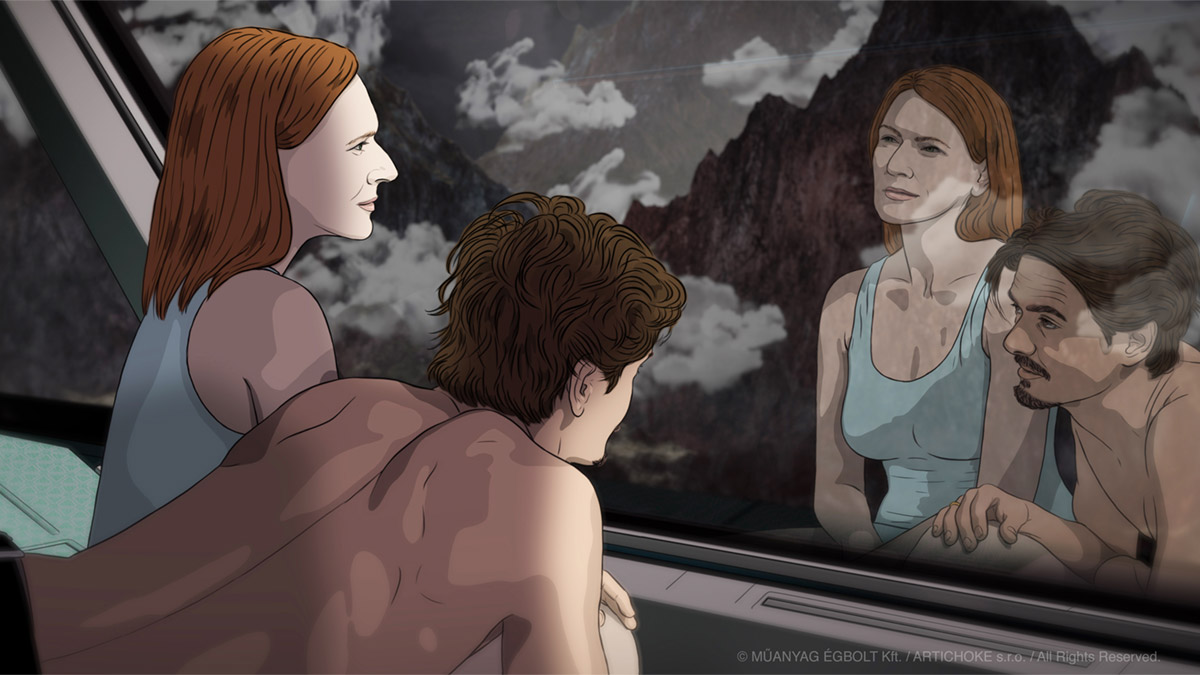 White Plastic Sky (Muanyag Egbolt) is a co-production between the SALTO Films (Hungary) and Artichoke (Slovakia), made with the rotoscoping technique (drawing on live footage) and elements and backgrounds in CG.